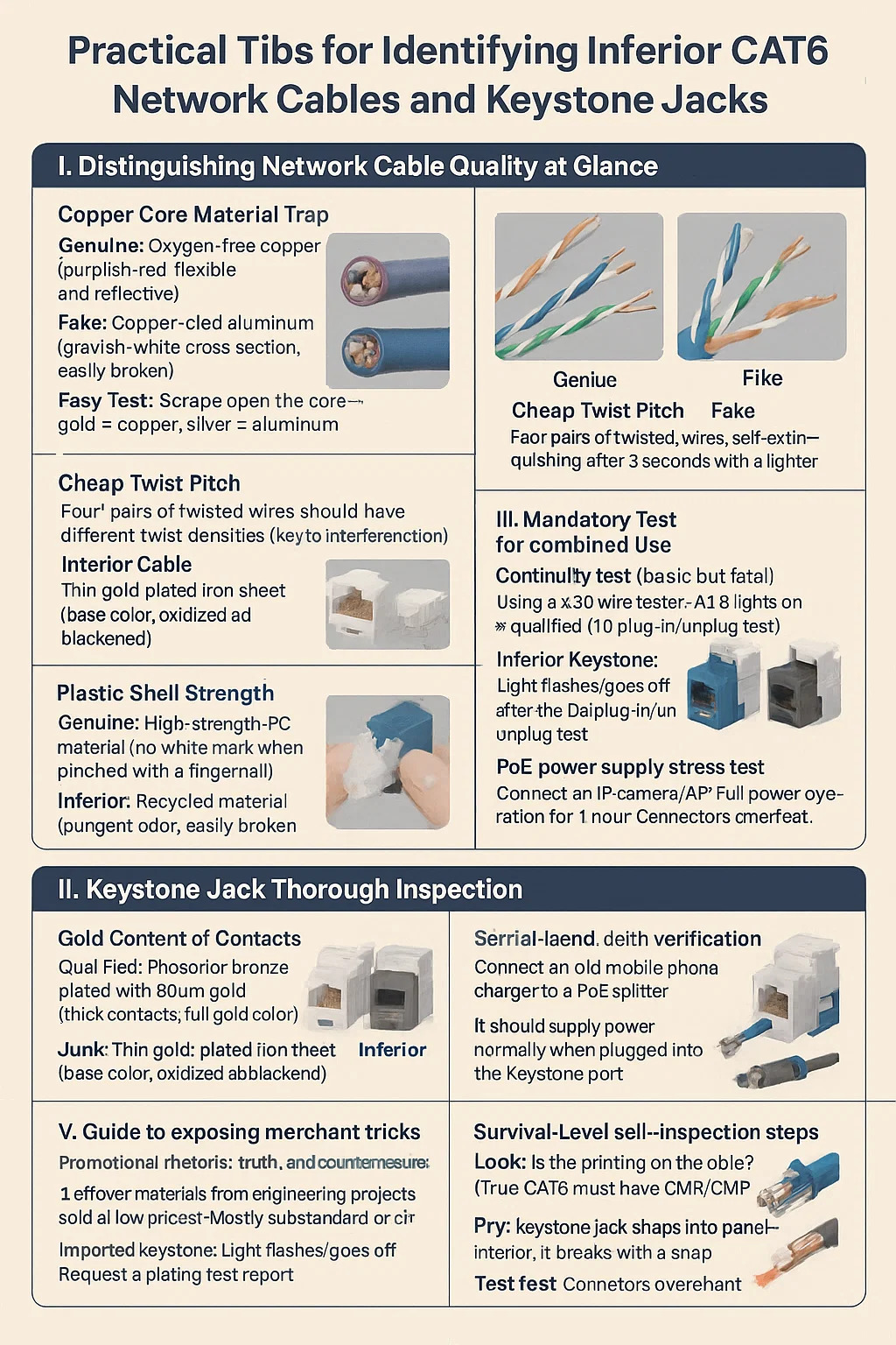 Consejos prácticos para identificar cables de red CAT6 y conectores Keystone inferiores
